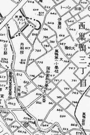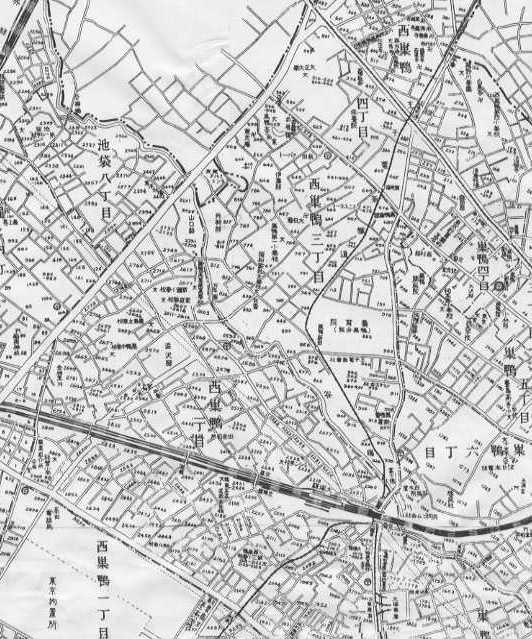 ここに昭和5(1930)年に発行された西巣鴨の地図があります。震災後のものになりますが、時代的に近いので、この地図を参考に池内姉妹(タルホ)の住居のあった場所を推定してみたいと思います。